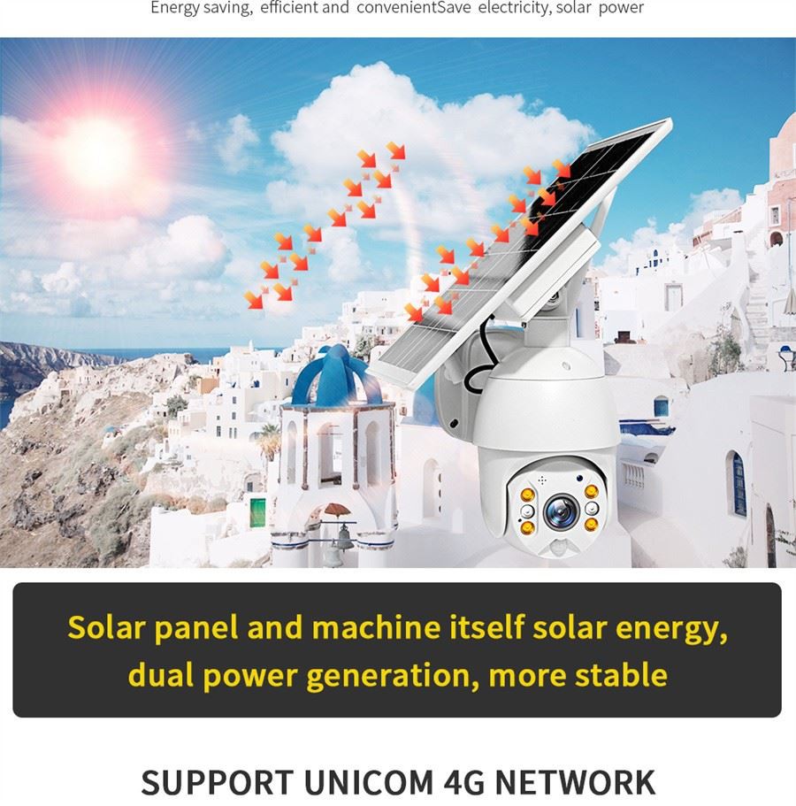 1. 100% bezdrátová a solární--- 4g venkovní vodotěsná solární kamera, 100% bezdrátová a snadná instalace. Bezdrátová bezpečnostní kamera solárního panelu po 3 hodinách přímého slunečního světla podporuje spotřebu energie za jeden den. 6ks dobíjecí vestavěná baterie 18650 až do 20000mAh prodlužuje její životnost, můžete ji používat a nemusíte se starat o počasí. 365 dní Nepřetržitý napájecí zdroj pro ochranu vaší domácí bezpečnosti.
